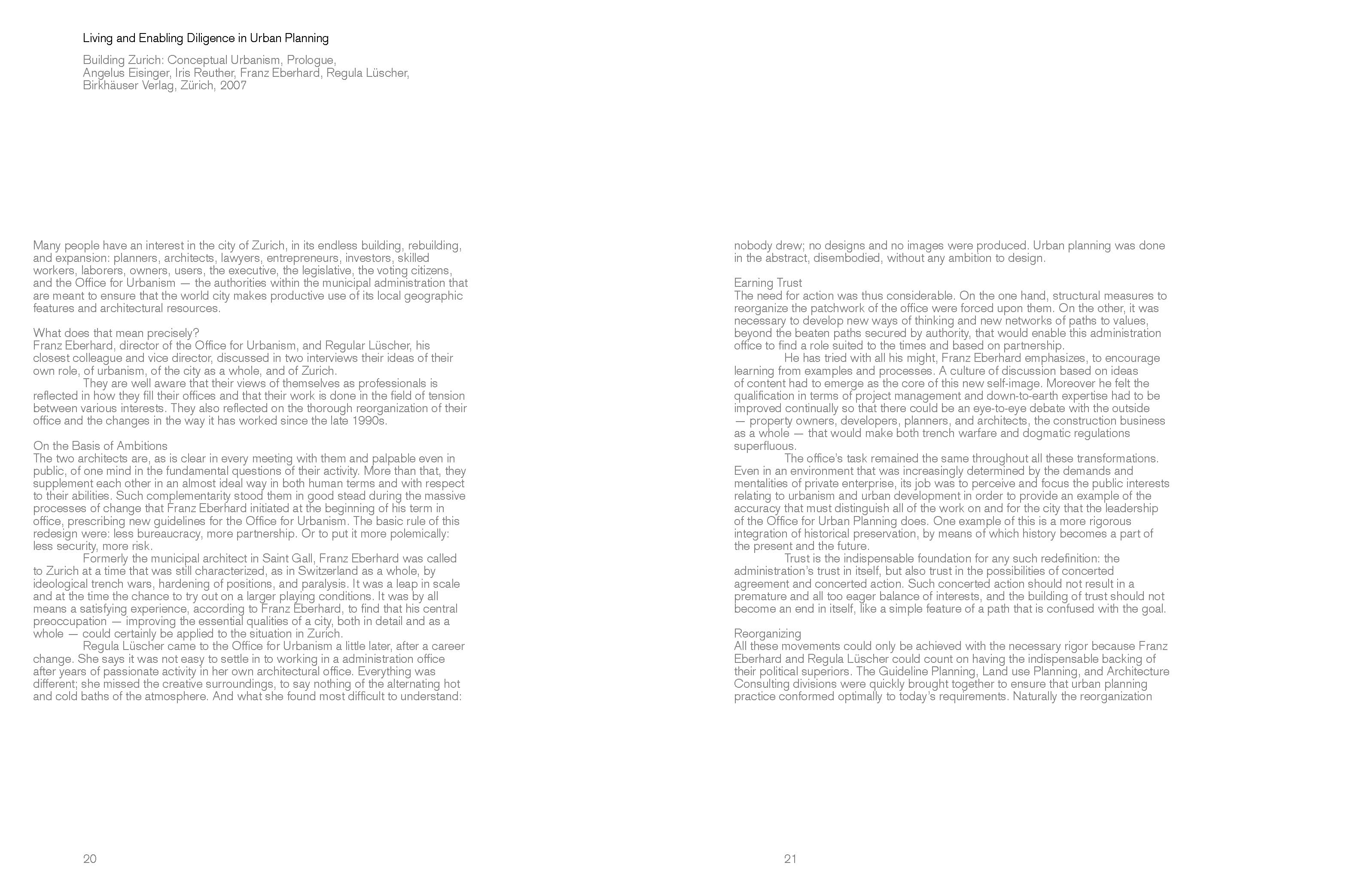 Briefing document for projects situated on a number of sites in Zurich, Switzerland, spring semester 2012.