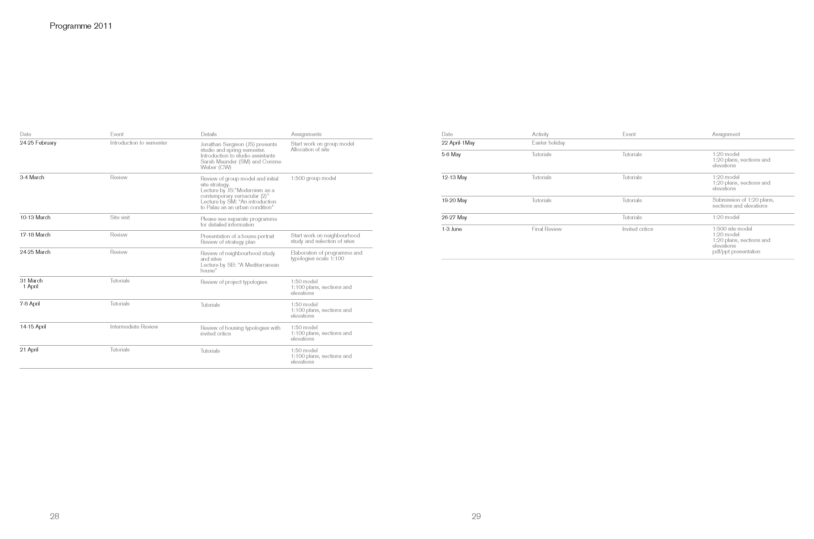 Briefing document for projects situated in a variety of sites in the centre of Palau, Sardinia, Italy, spring semester, 2011.