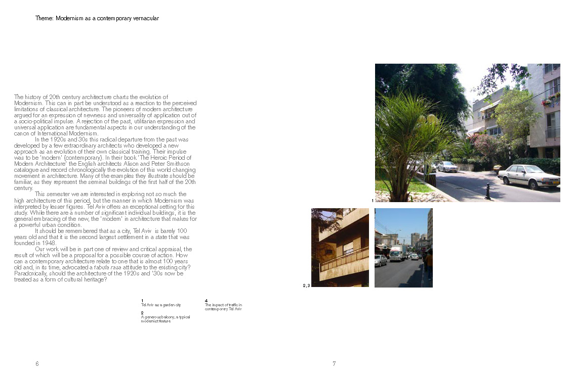 Briefing document for projects situated in a variety of sites in the centre of Tel Aviv, Israel, autumn semester 2010.